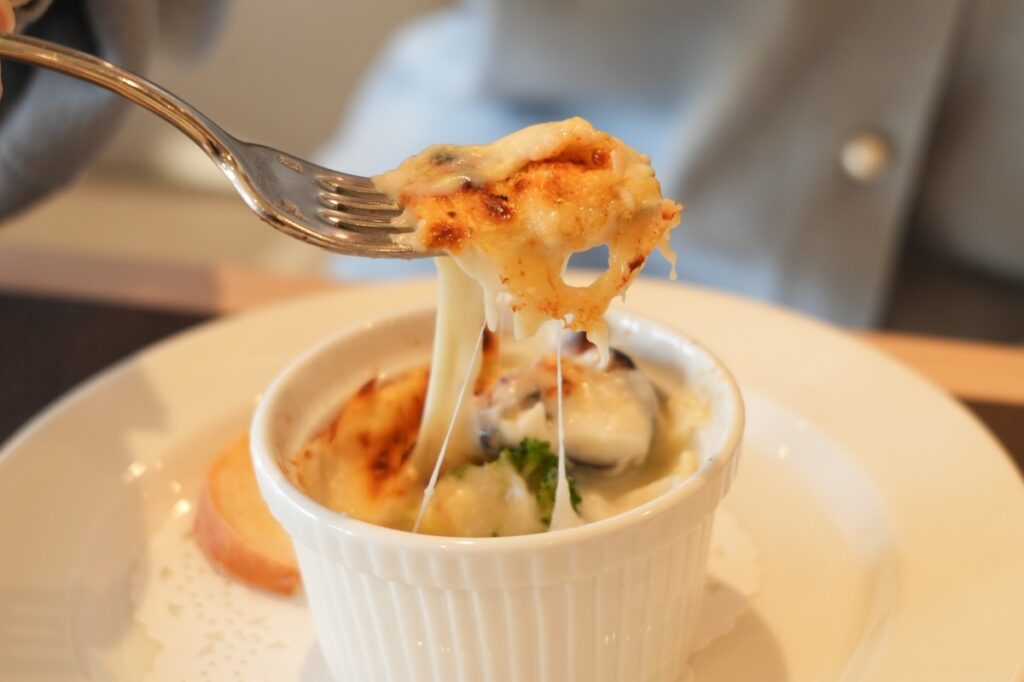 焼きたてのオーブン料理は、チーズもたっぷりとのっていて、熱々でトロリ、たまらない美味しさです。