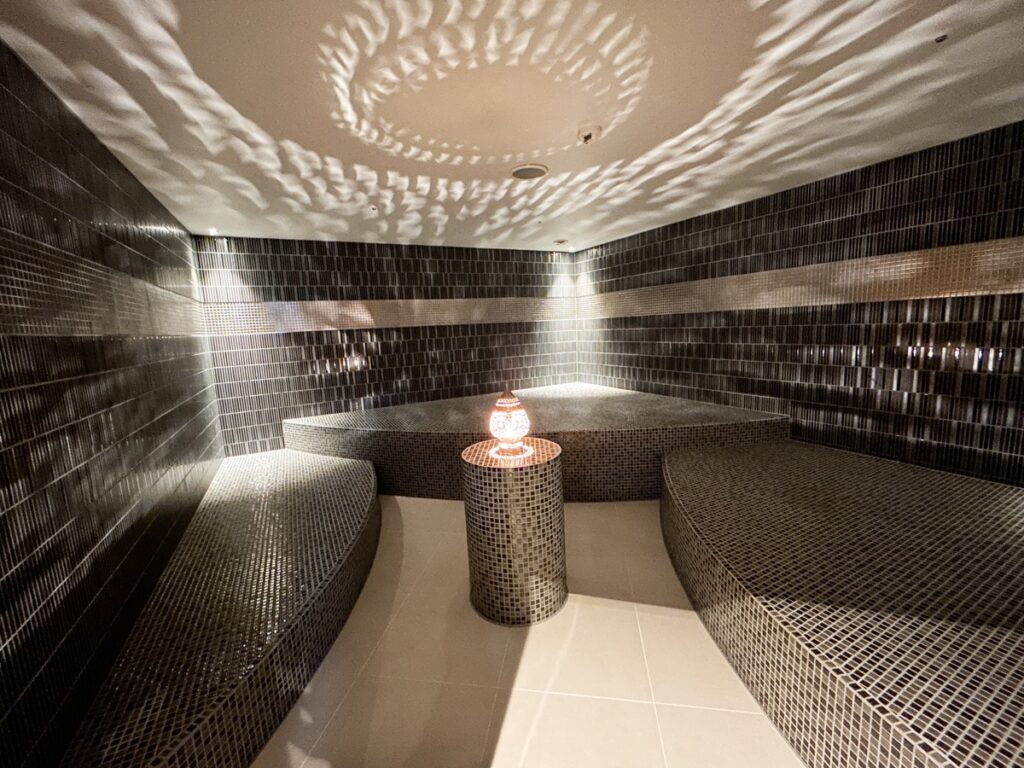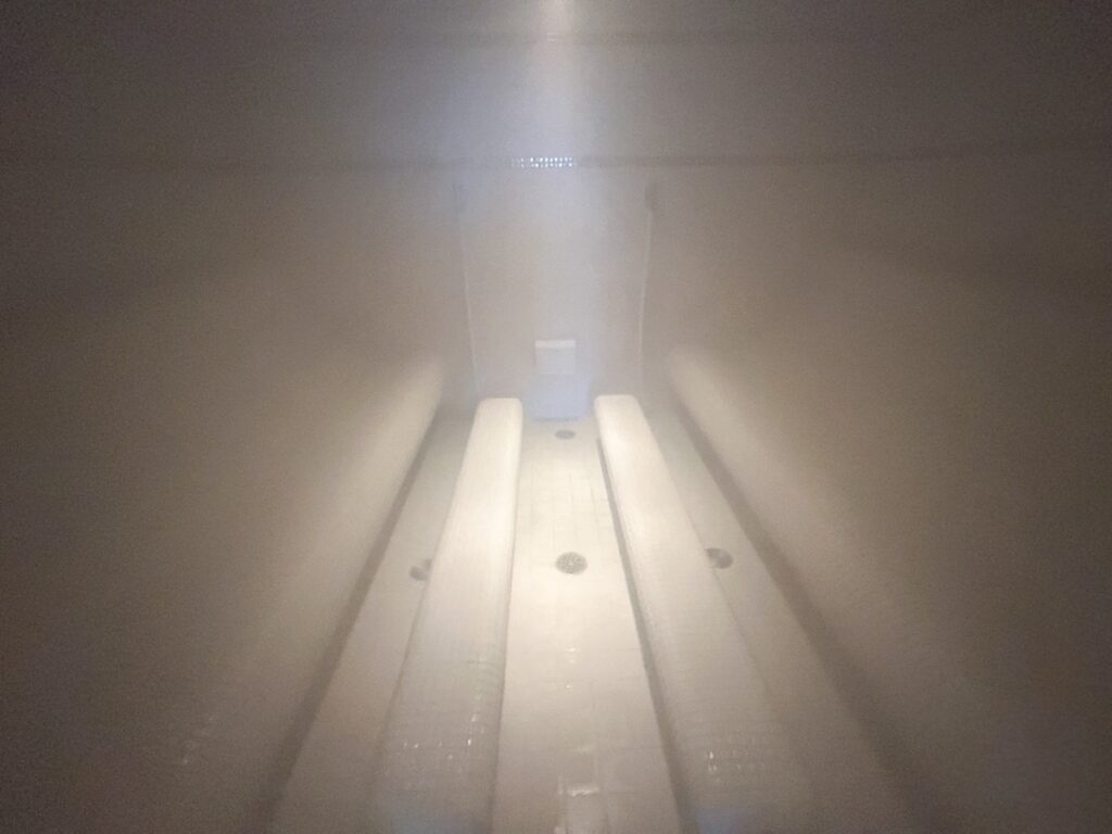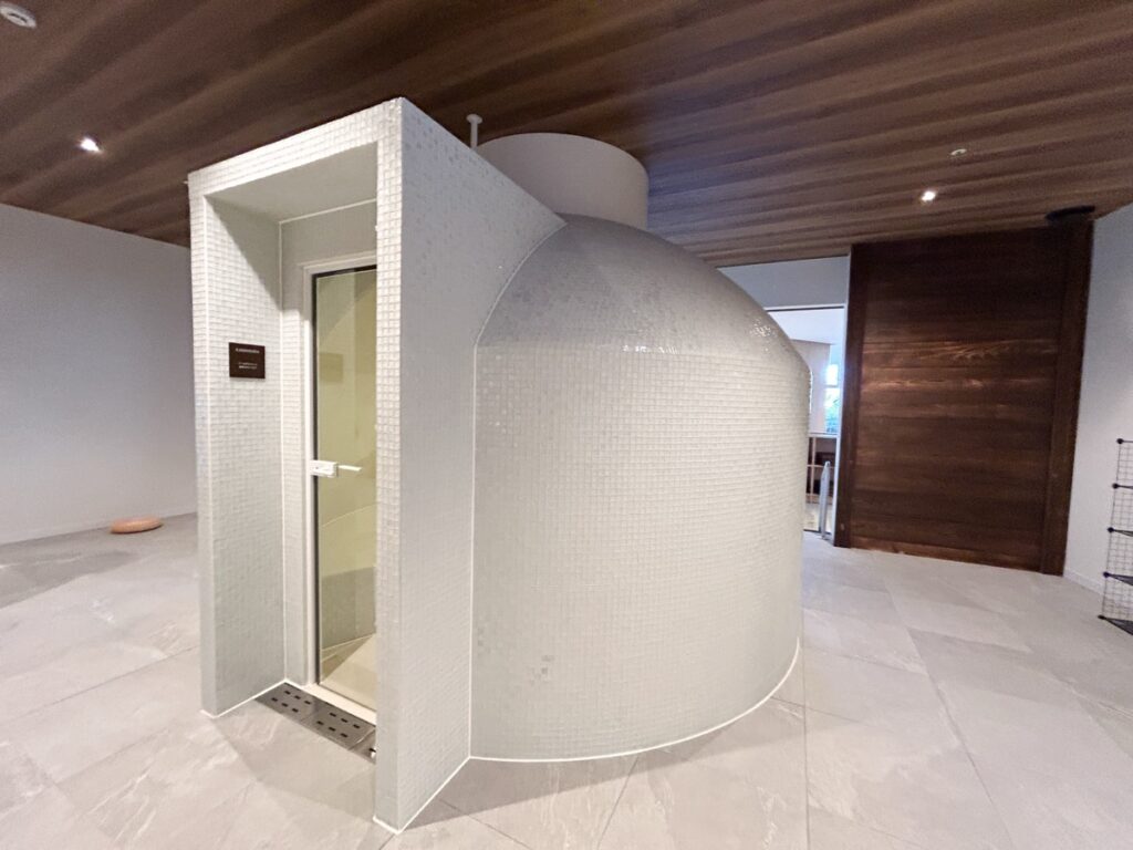 壁・床・ベンチからの熱で穏やかに温められた蒸気が広がるアロマスチームサウナです。