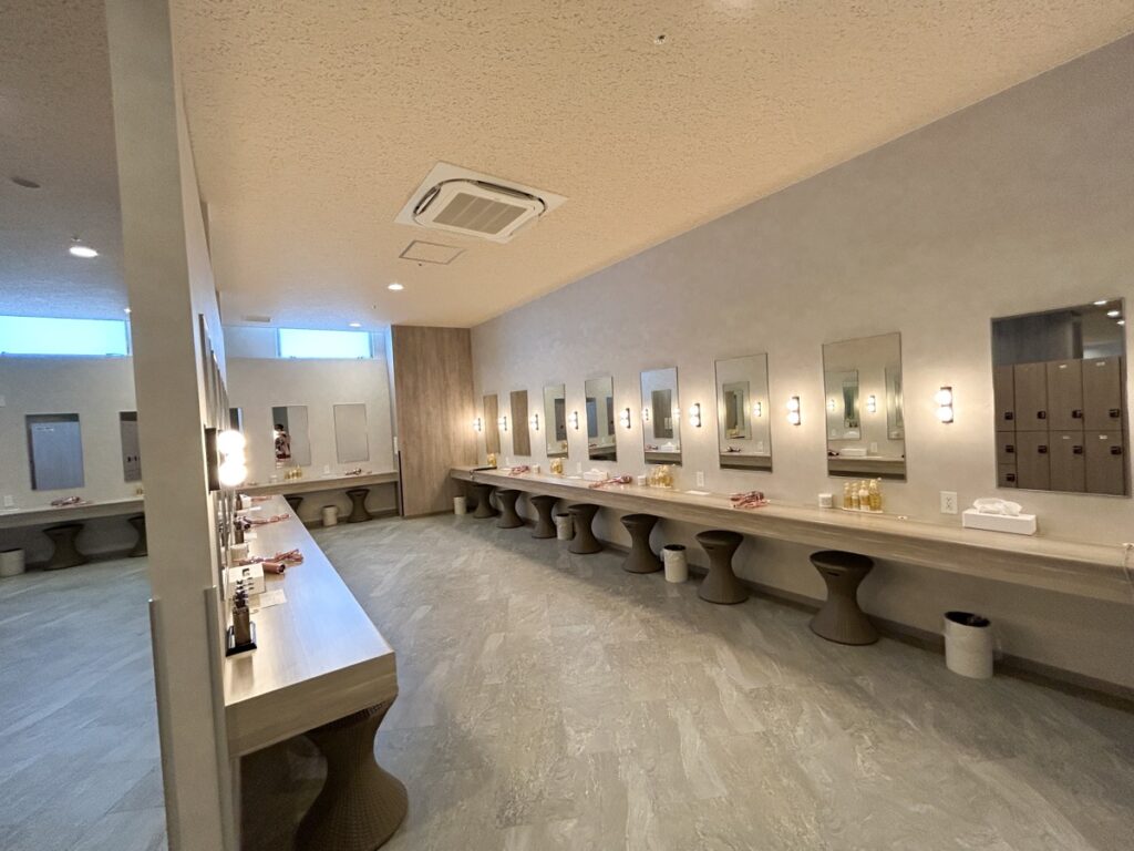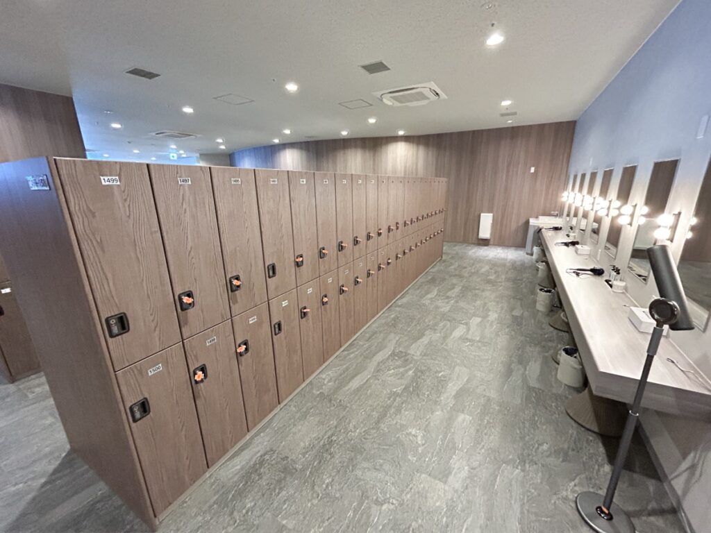 女湯(女性専用エリア)のロッカールームは、淡いカラーの木目調のインテリアで統一されています。