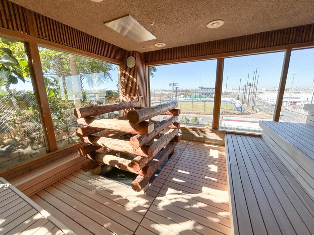 舞浜リゾートや都心方面が一望できる、国内最大級の開口面積を誇る展望サウナです。