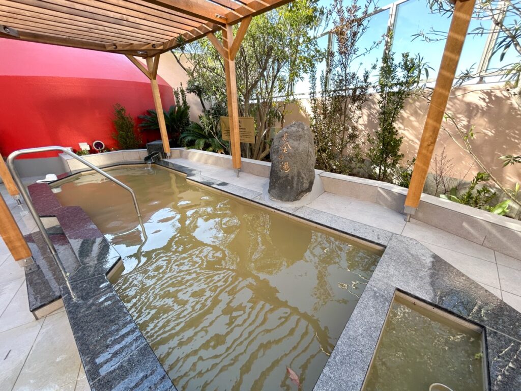 4階のSPAエリアには、男女それぞれに多彩な湯船とサウナが完備されています。地下1,700mから湧き出る天然温泉「黄金の湯」を中心に、バラエティ豊かな入浴体験が可能です。