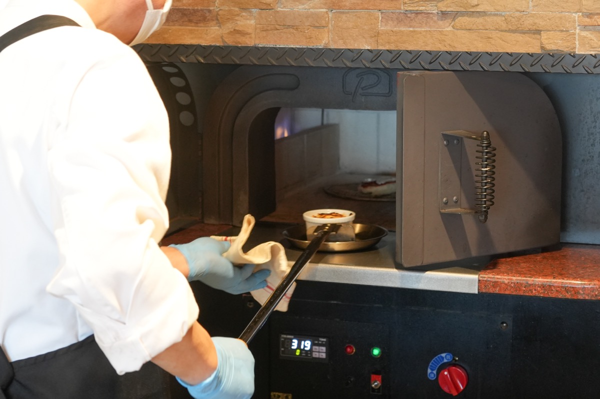 同じ石窯では、オリジナルのオーブン料理を作ることができます。好みの具材をココットに入れてシェフにお願いすると、石窯で熱々に焼き上げてくれます。