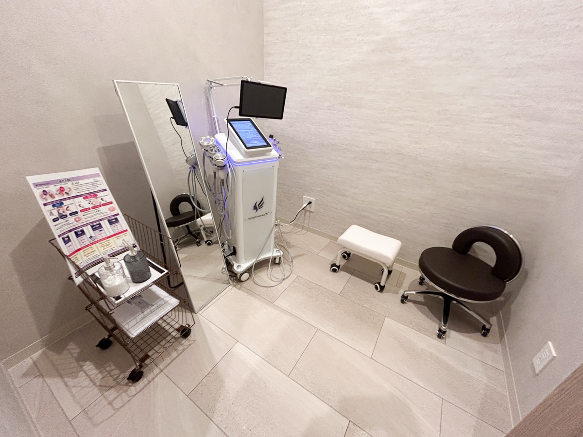 セルフエステプロ仕様の最新エステ機器を自分で操作してケアできるスペースです。気になる部位を重点的に、自分のペースで磨き上げることができます。(別途料金)