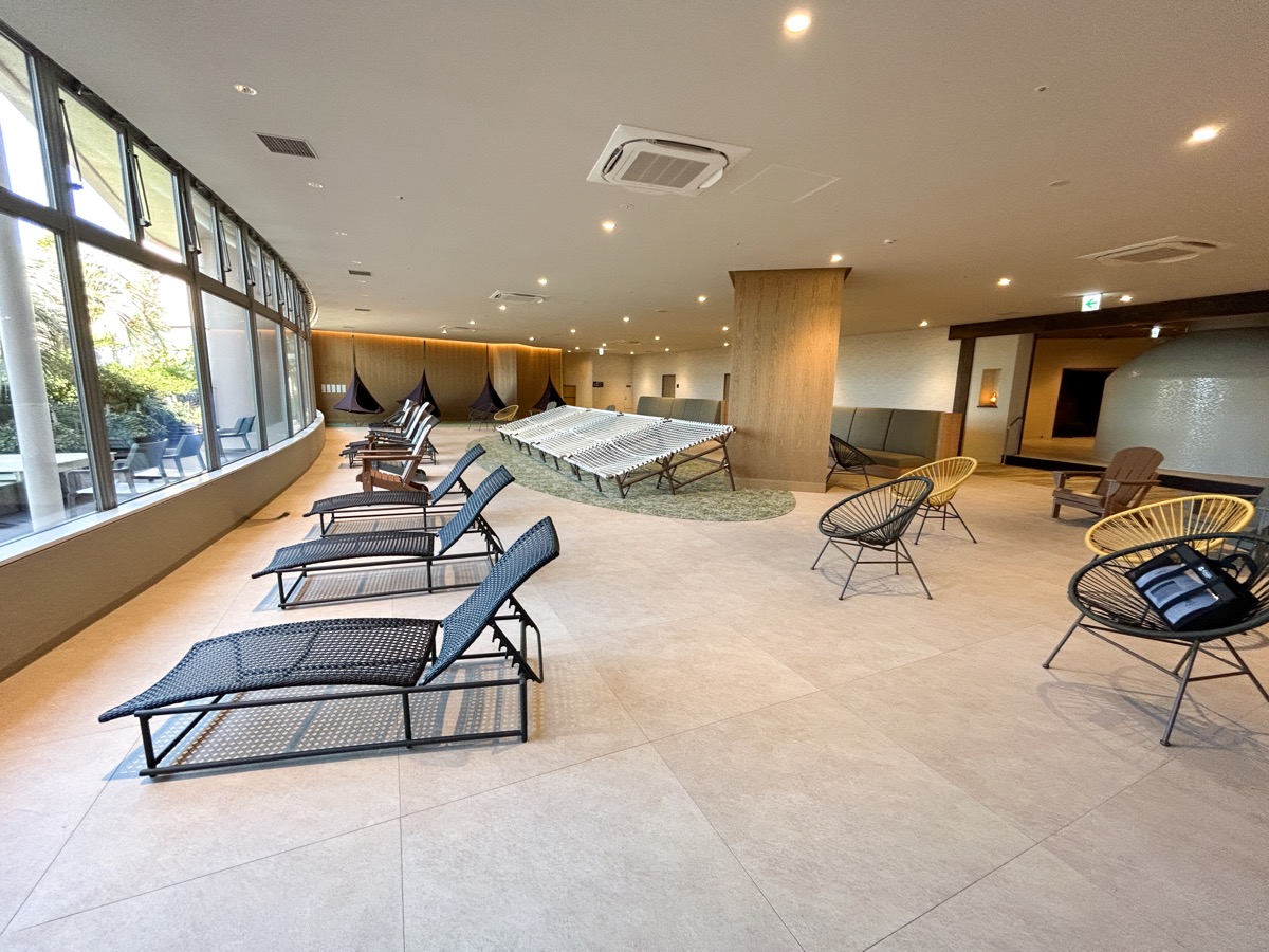 男女共用と女性専用の2種類が用意されています。リクライニングチェアが並ぶ、静かな休息の間です。照明も落とされており、深い眠りにつくことも可能です。