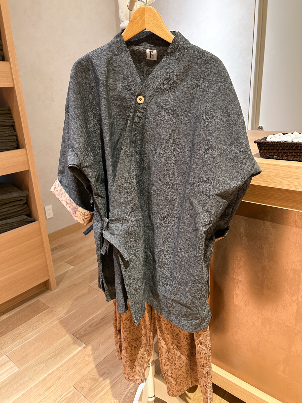 また、5階のSPA+(スパプラス)(追加料金)利用者は、岩盤浴着を借りることができます。岩盤浴着は、セパレートタイプなので動きやすく、ズボンには、「SPA&HOTEL舞浜ユーラシア」の公式キャラクター「ユーラシわん」がデザインされています。